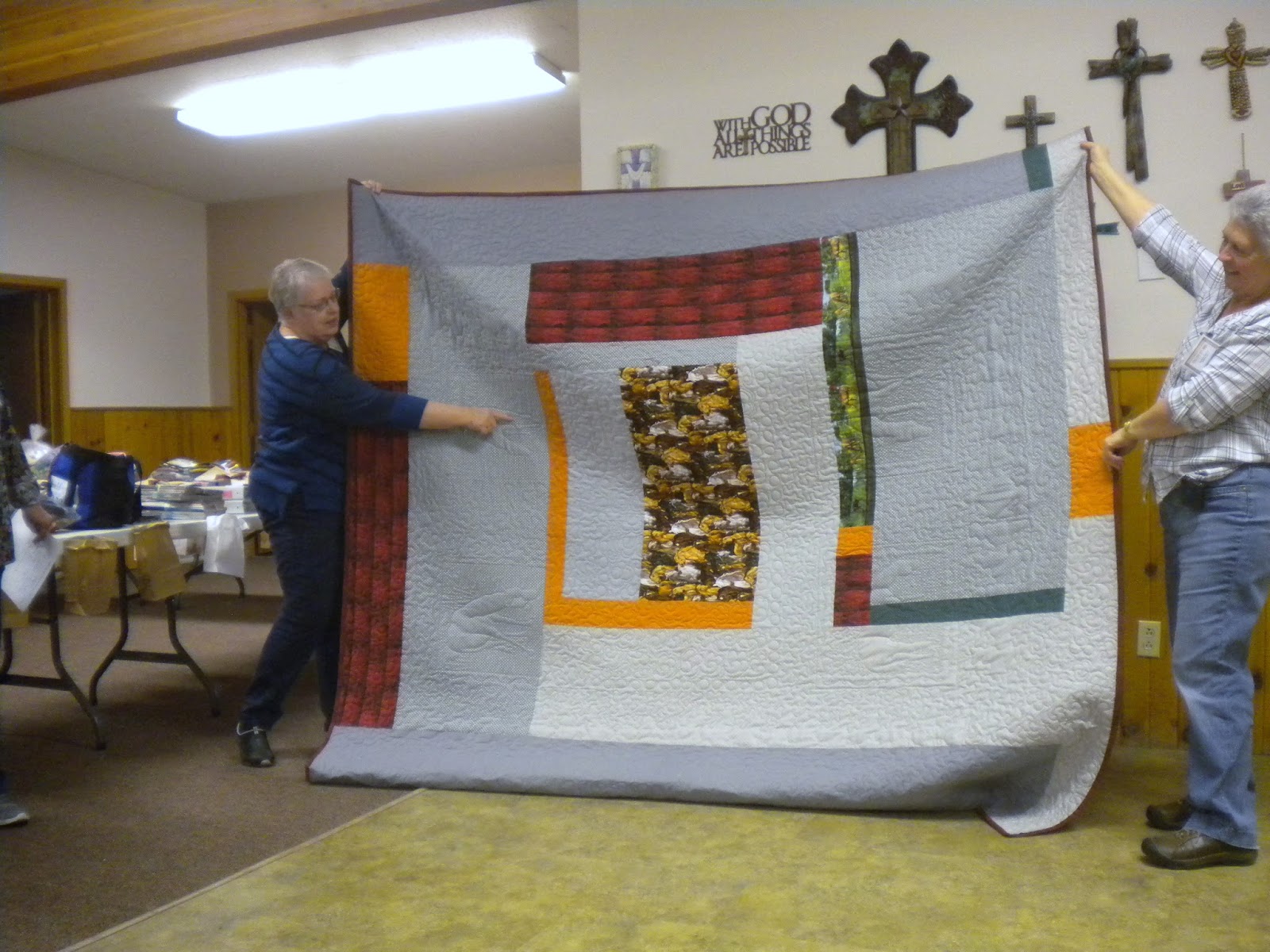 | Linda Sponenburgh - showing quilt to be raffled off |